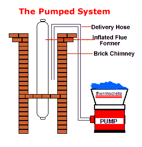 Midwalesstoves are approved installers of the popular Thermocrete Chimney Lining in mid and South Wales area The basic concept of the Thermocrete system is simple but extremely effective. A rubber former is inserted precisely in position through the entire length of the flue. Special techniques are used to keep the former centralised, even if the flue has a 45° bend. Thermocrete B2c material is pumped into the flue from the top of the chimney stack filling all voids, cracks and damaged joints. When the Thermocrete has hardened, the former is deflated and removed leaving a perfectly smooth cylindrical flue.