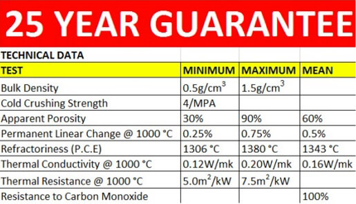These average values are expected to be achieved under laboratory test procedures. Site results can be expected to vary from these figure; therefore the above results do not constitute a specification. Thermocrete Chimney Linings are committed to a programme of expansion and development and In the interests of progress; we retain the right to alter the above at any time.